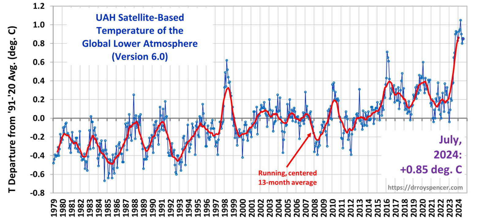Additionally, satellites confirm that greenhouse gases are increasingly insulating the earth. For one thing, the atmosphere above the greenhouse insulating layer is becoming colder — that is, less heat is passing through the greenhouse layer. For another, less heat is escaping from our planet than is being received from the sun.